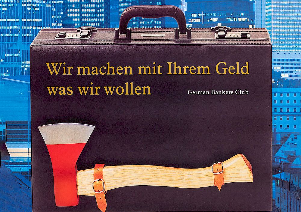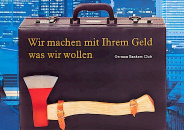 Against market fundamentalism that is hostile to people and nature, for solidarity and political-economic self-emancipation: A wall newspaper by Goliathwatch on the power of large corporations, complemented by artistic works by Klaus Staeck.