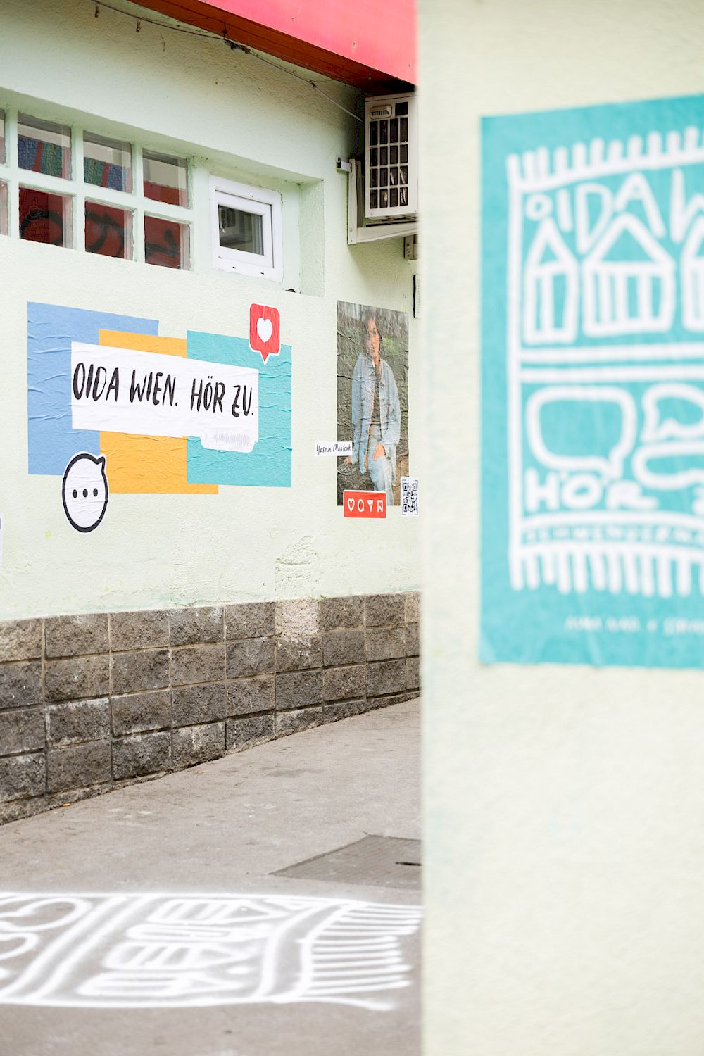 Nur sechs Tage nach der Eröffnung im Oktober 2025 wurde das Projekt OIDA WIEN. HÖR ZU. von Unbekannten vollständig entfernt. Für die verbleibende Projektlaufzeit wurde der Schwendermarkt von den Künstler*innen in einen Ort der Befragung und Auseinandersetzung mit dieser mutwilligen Ausradierung gemacht.