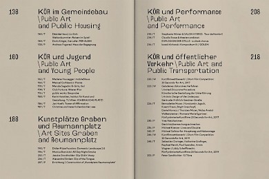 Der jährlich von KÖR bespielte Kunstplatz am Graben sowie der neugestaltete Kunstplatz am Reumannplatz finden ebenso Einzug in diesem Band und zeigen Projekte an jenen prominenten Plätzen auf, die das Stadtbild jeden Sommer mit prägen. Neben einigen Performanceprojekten, die den Stadtraum neu erlebbar machten, begleiteten auch traditionelle Themen wie die Beschäftigung von KÖR mit dem öffentlichen Verkehr sowie Gedenken die KÖR-Jury in ihrer Schaffensperiode intensiv, wodurch auch unter diesen Vorzeichen viele Projekte realisiert werden konnten, die den öffentlichen Raum nachhaltig aufwerten.