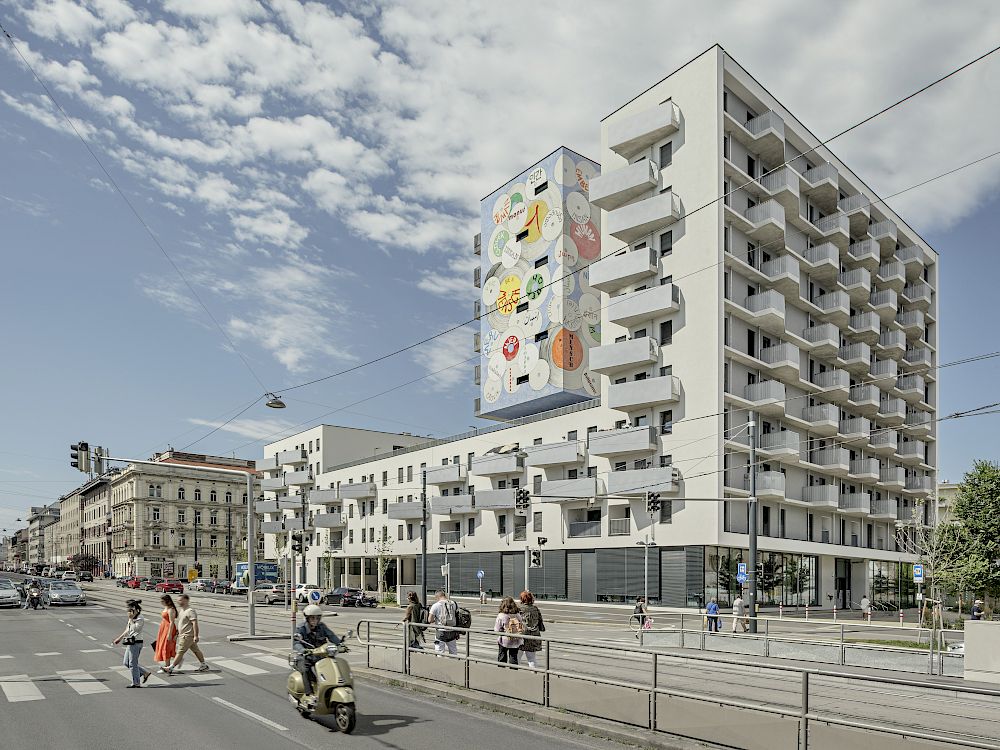 Ausgehend von Johanna Kandls neuer Wandmalerei "Be a mensch" am Willi-Resetarits-Hof führt der Weg ins Sonnwendviertel. Dabei sehen wir künstlerische Fassadengestaltungen unterschiedlichster Art, erkunden den Jubiläumsbrunnen "WirWasser" von Gelatin und erfahren von temporären Kunstprojekten, die Begegnungsräume im Neubaugebiet schufen und bis heute Identität stiften.